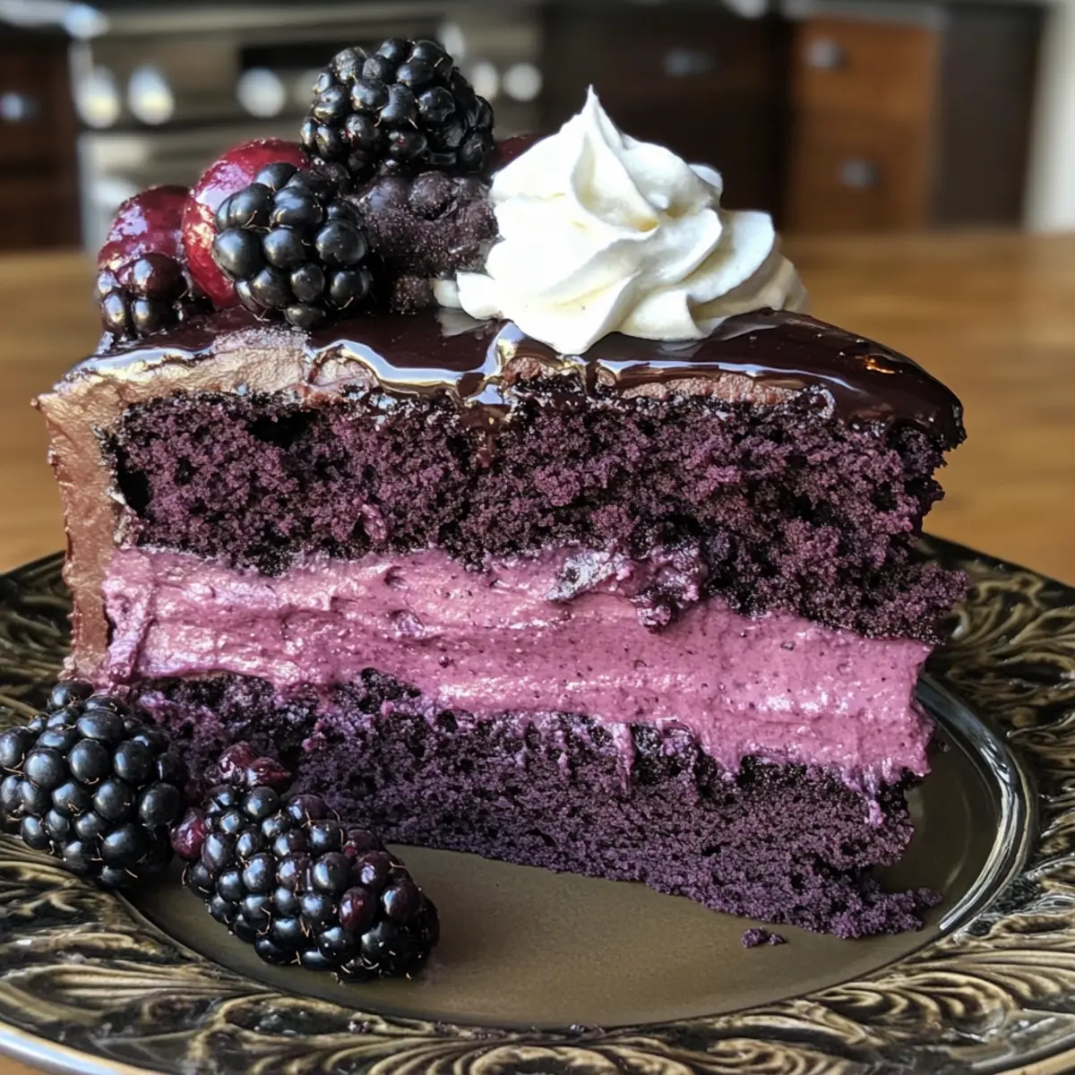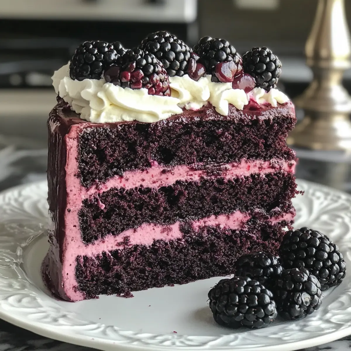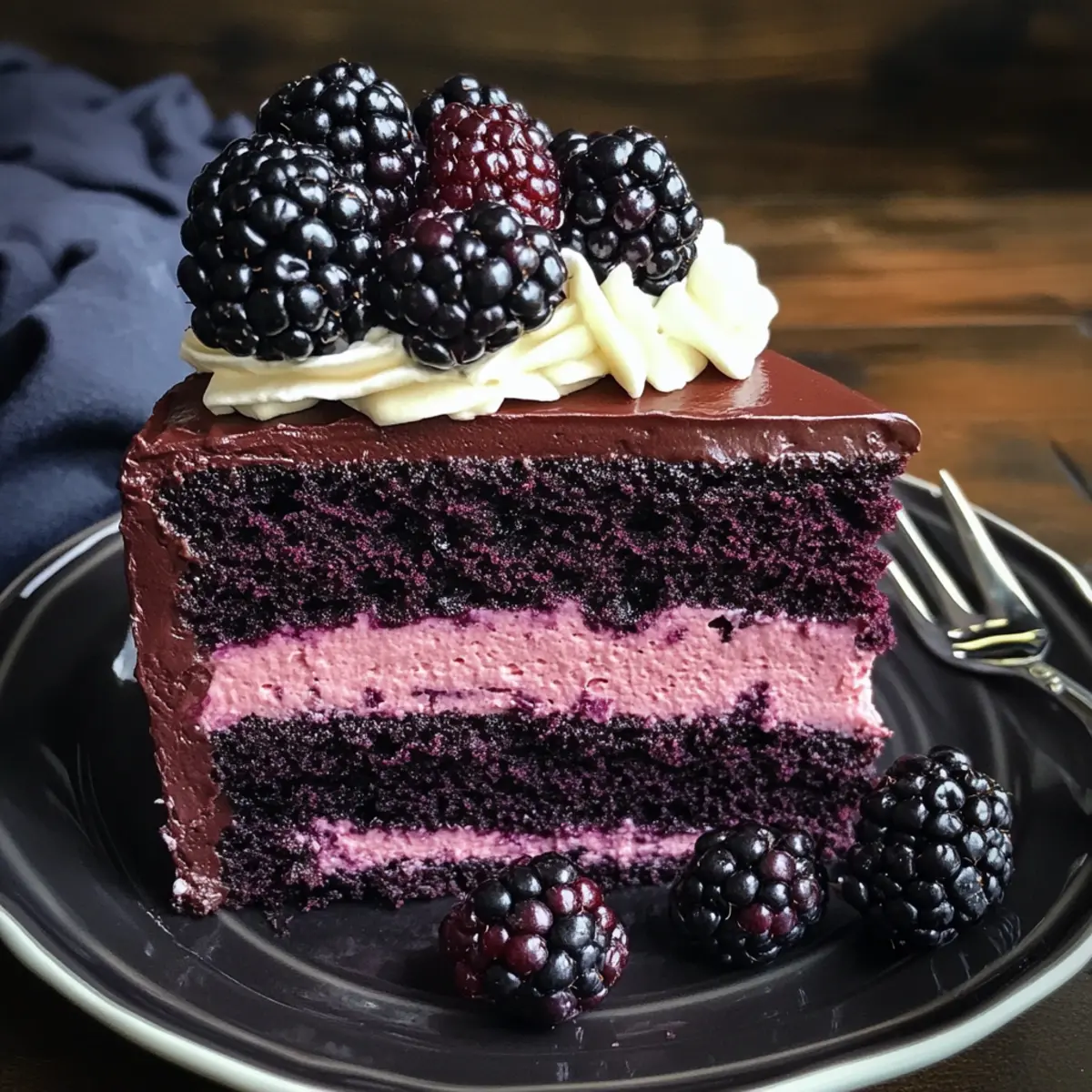 Refrigerate your assembled Blackberry Velvet Gothic Cake for at least one hour before serving. This step allows the flavors to meld beautifully and ensures the whipped cream stays firm. After chilling, you can garnish with fresh blackberries, edible flowers, dark chocolate shavings, or a dusting of cocoa powder for an elegant touch.