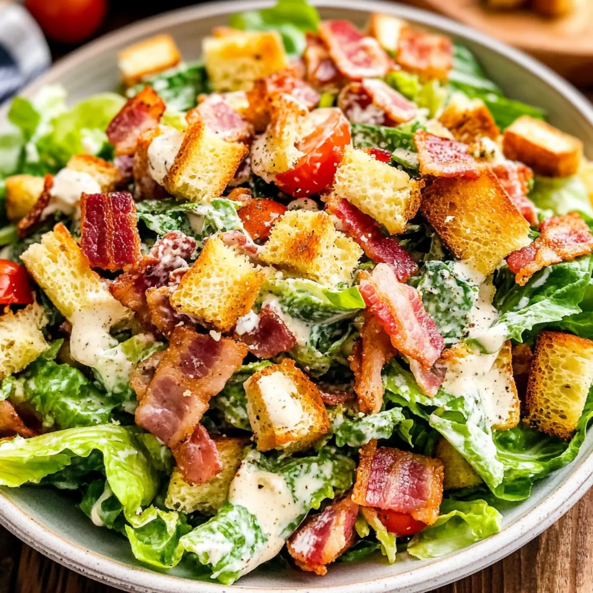 Savory BLT Salad with Creamy Dressing and Crunchy Bacon