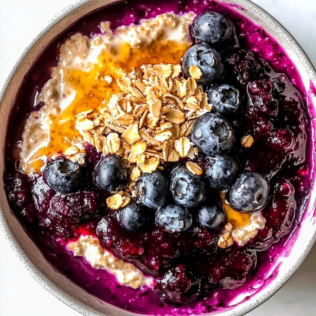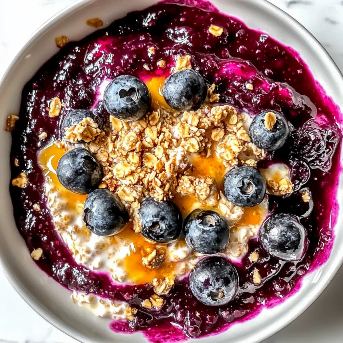 Once the oats are fully soaked and the compote is ready, it’s time to serve! Scoop the creamy Blueberry Pie Overnight Oats into bowls or jars. Top each serving with a generous spoonful of the blueberry chia compote, and sprinkle some crunchy granola on top for added texture. Your breakfast is now ready to enjoy!
