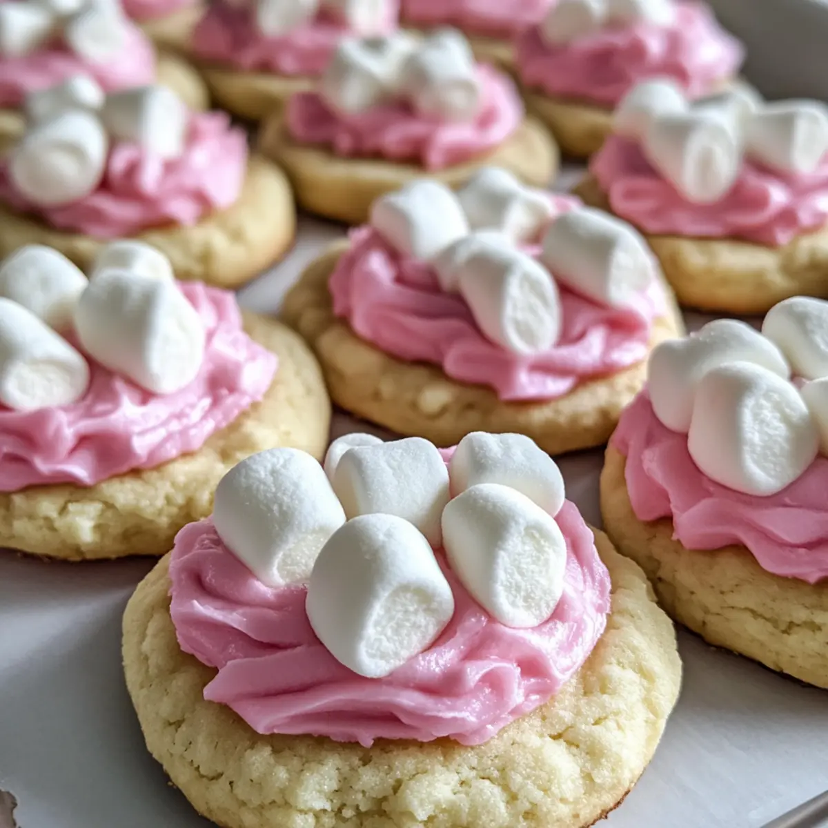 - Create the Bunny Tail: Add a mini marshmallow with a dollop of frosting in the center of each cookie.