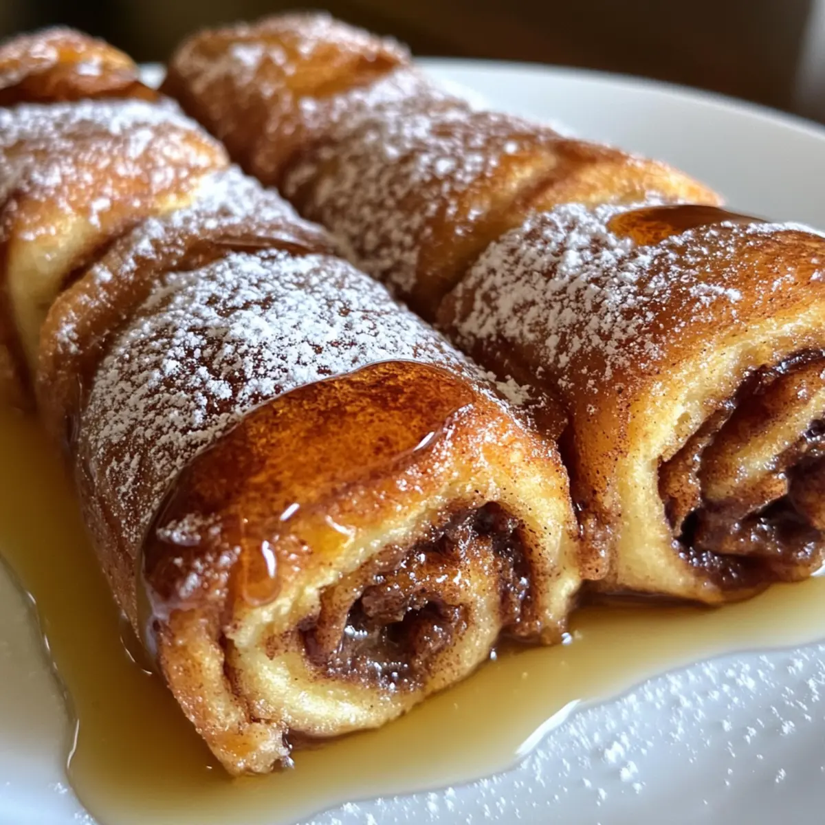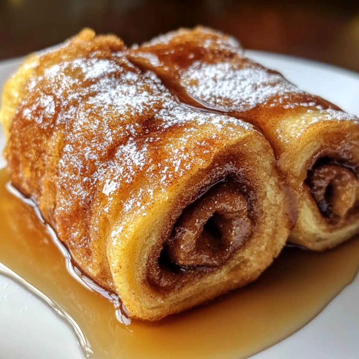 Once the roll-ups are beautifully golden and crispy on all sides, carefully transfer them to a plate. Serve warm, and consider drizzling with syrup or dusting with powdered sugar for extra sweetness. These Cinnamon Roll French Toast Roll-Ups are ready to impress your family or guests, offering a delightful blend of flavors perfect for breakfast or brunch!