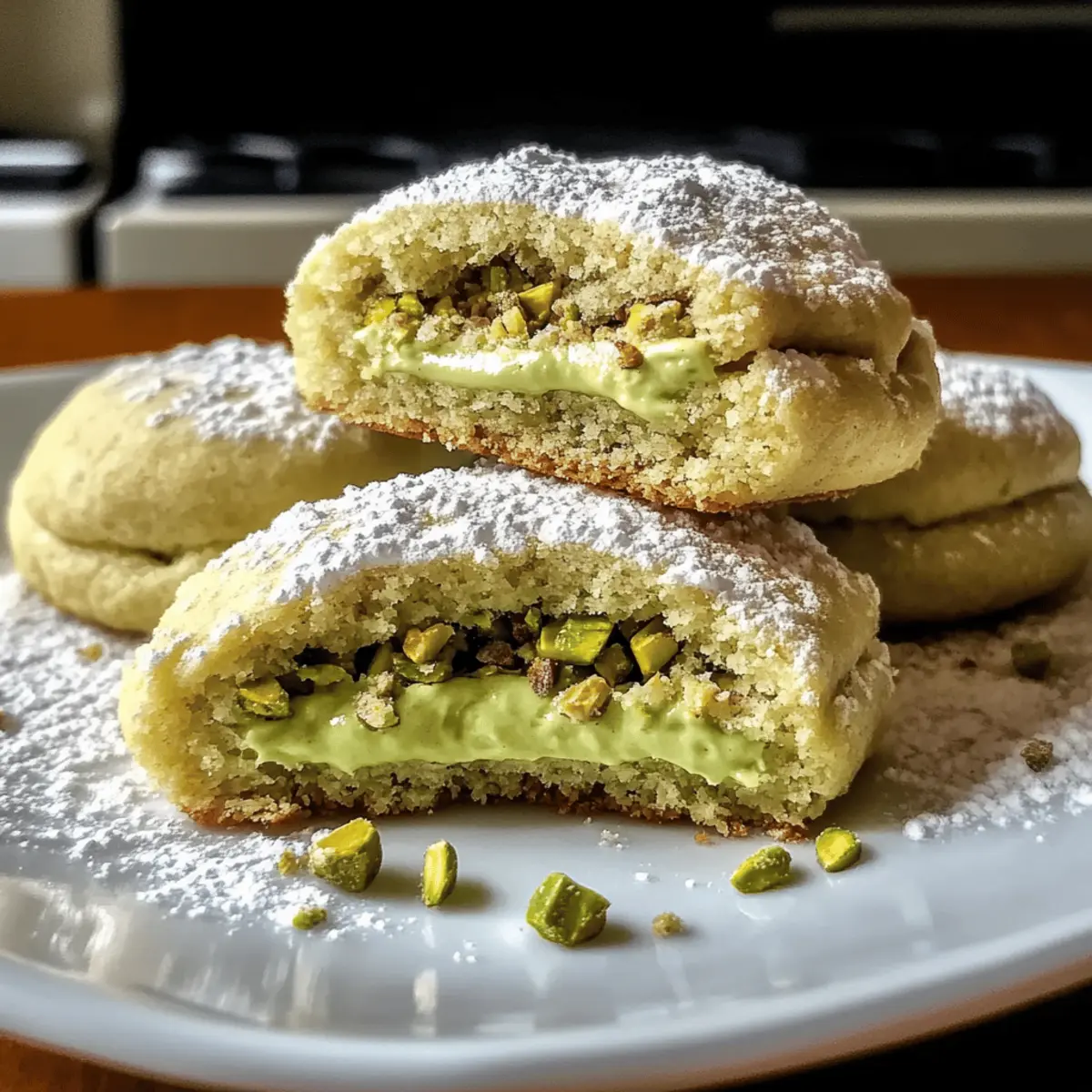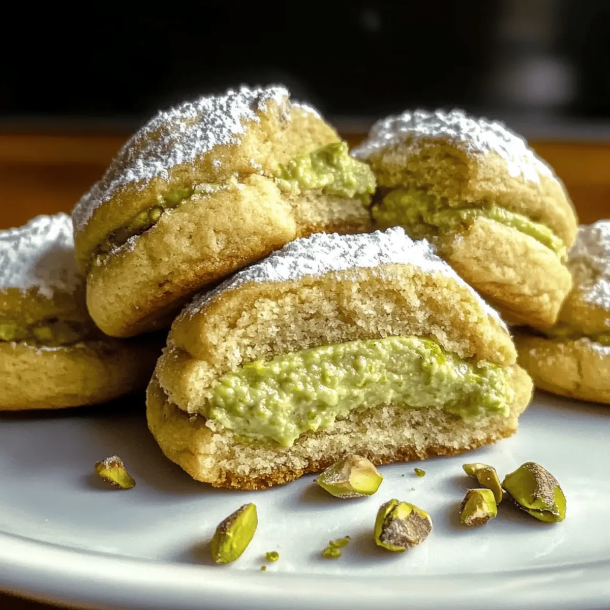 Once the cookies are completely cooled, spread a generous layer of the creamy pistachio filling between two cookie halves. Lightly dust the assembled cookies with powdered sugar and sprinkle with crushed pistachios for an elegant finishing touch. This final step adds visually pleasing crunch that complements the vibrant flavors of the Pistachio Cream Cookies.