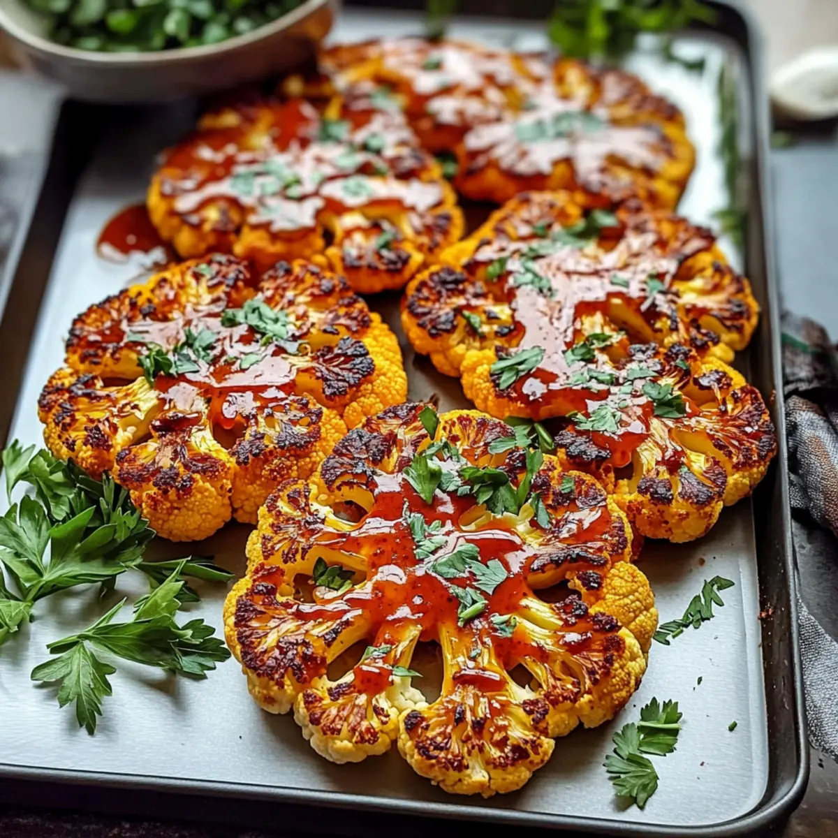- Coat Cauliflower: Brush roasted steaks with buffalo sauce and return to oven for 5-10 minutes.
