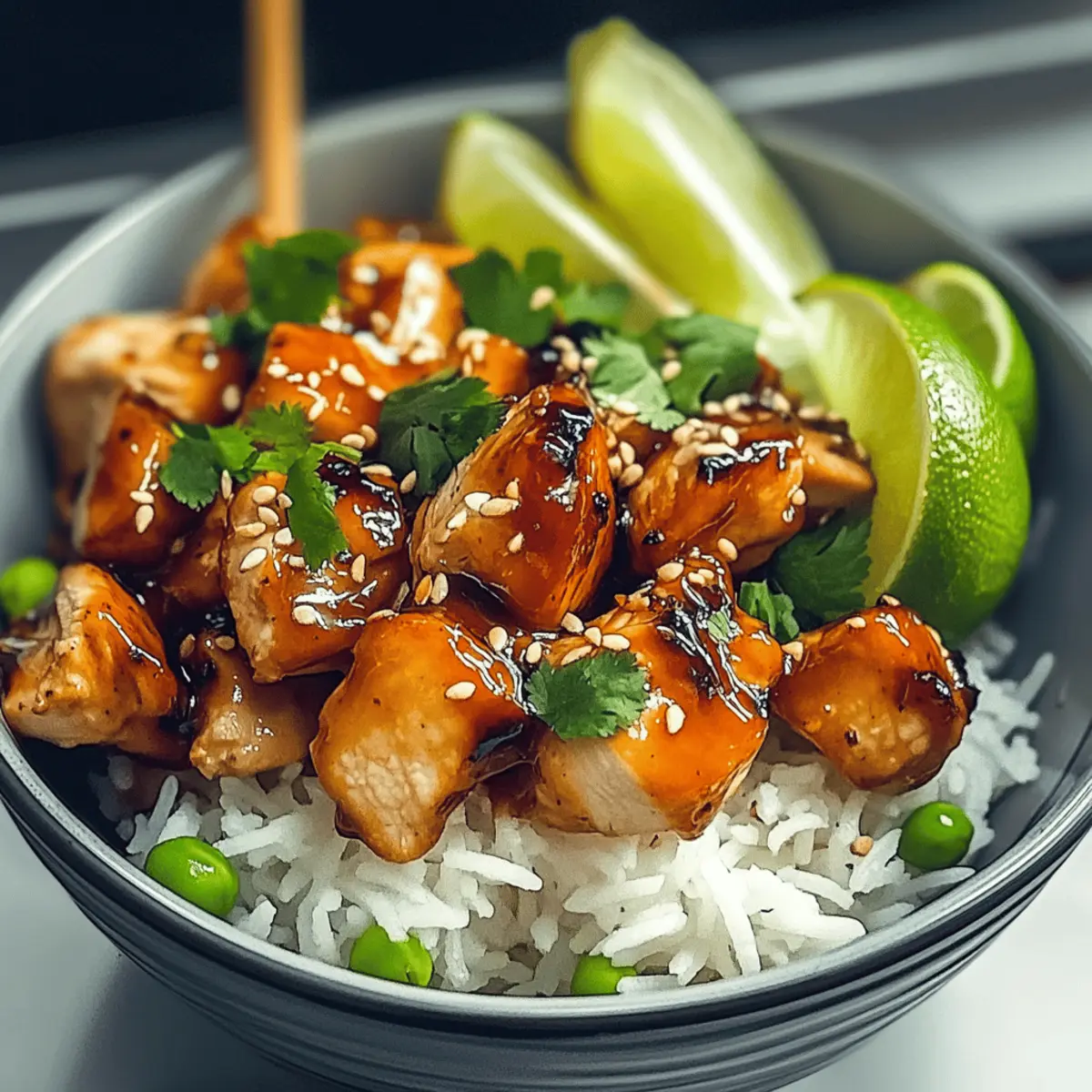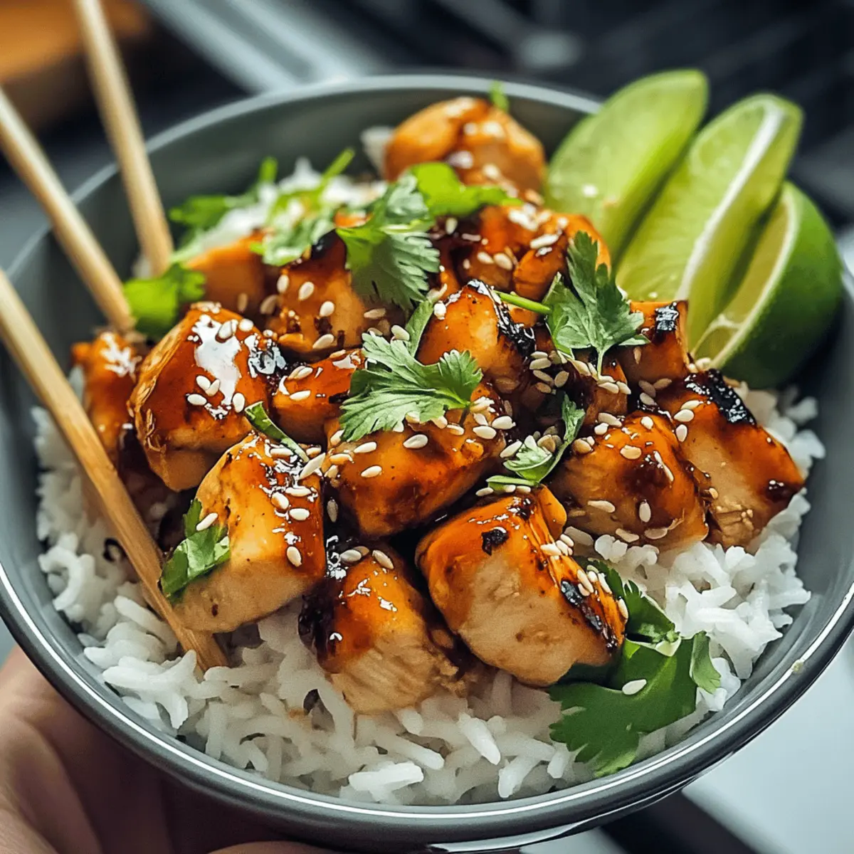 Garnishing Joy: Elevate your presentation with fresh cilantro and lime wedges, adding color, freshness, and acidity to complement the sweet flavors of the Spicy Maple Chicken.