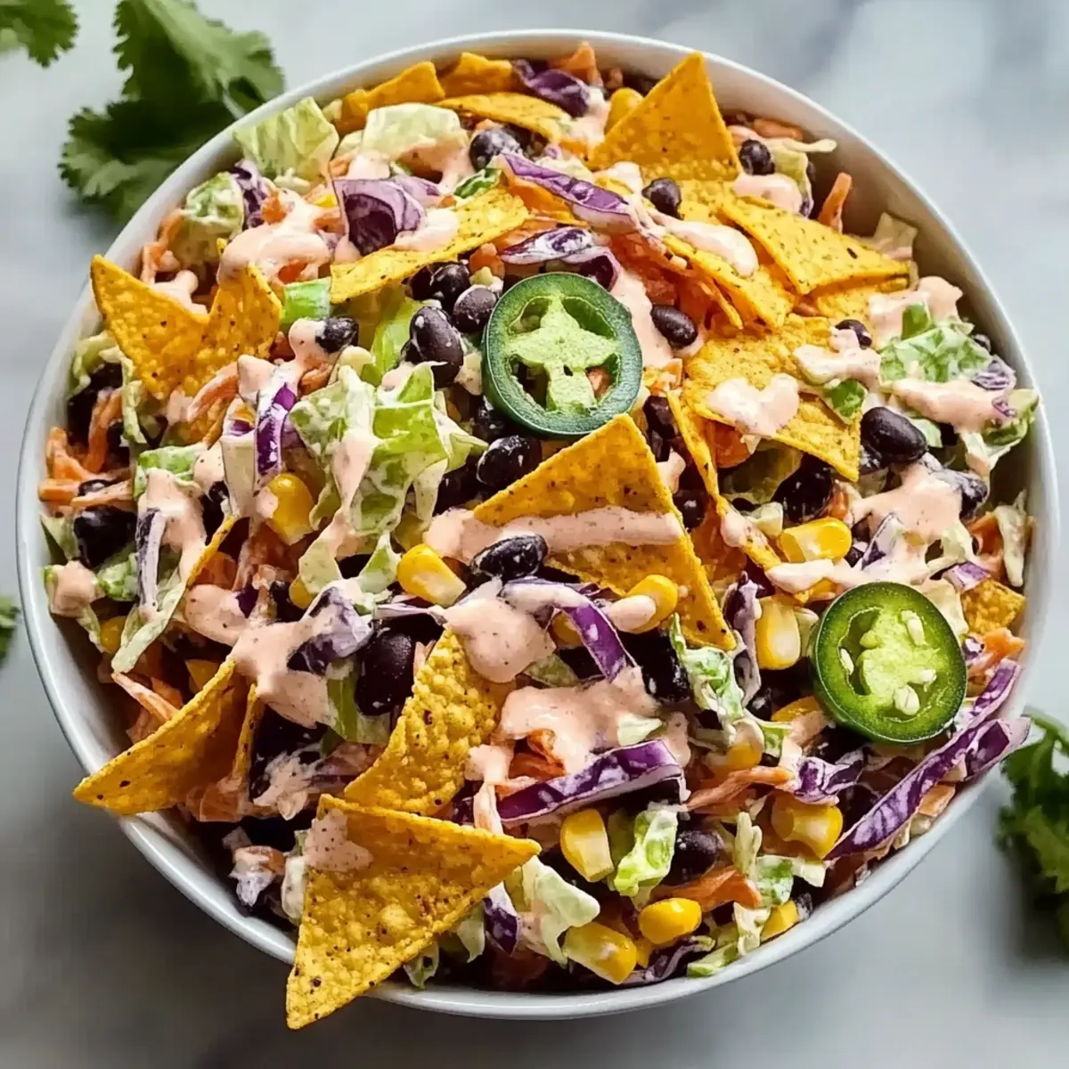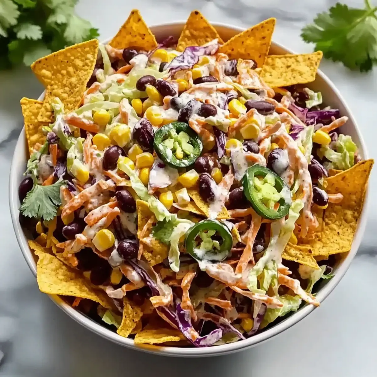 I wouldn’t recommend freezing this salad, as the texture of the cabbage and other fresh ingredients can change significantly once thawed. Instead, if you want to prepare ahead, mix the salad ingredients and store them without the dressing and Fritos, then add those just before serving. This way, everything stays fresh and crunchy!