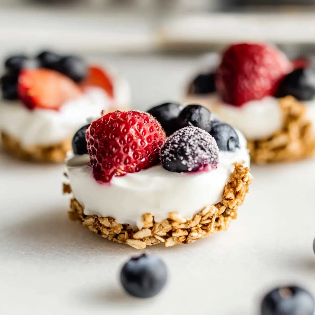 These Frozen Yogurt Granola Cups are ideal for busy cooks who want to save time and ensure delicious snacks are always on hand! You can prepare the granola base and layer it with yogurt up to 24 hours in advance; simply press the granola mixture into muffin liners and top with yogurt before refrigerating. To keep them fresh, store them in an airtight container in the freezer for up to 2 months. When you’re ready to serve, just add your choice of fresh berries and allow the cups to thaw at room temperature for about 5-10 minutes before indulging; they’ll taste just as delightful! Enjoy hassle-free snacking whenever you need a quick pick-me-up with these Frozen Yogurt Granola Cups!