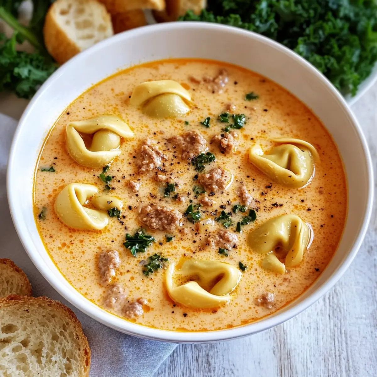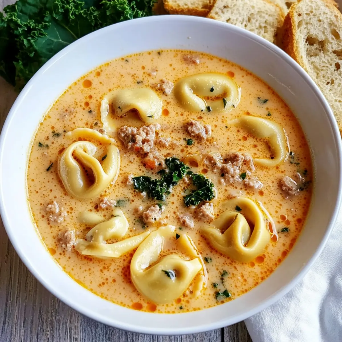 Comforting, this Creamy Tortellini Soup feels like a warm hug in a bowl. Quick and easy, you can prepare it in just 30 minutes, making it perfect for busy weeknights. Versatile, adapt it to fit your dietary preferences with simple ingredient swaps—try turkey sausage for a leaner dish or omit meat entirely for a delightful vegetarian option. Rich and flavorful, the combination of savory sausage, vibrant kale, and creamy broth is a guaranteed crowd-pleaser. Plus, serving it with crusty bread or a fresh garden salad makes for a complete and satisfying meal!