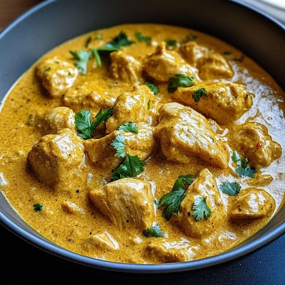 Creamy Indulgence: The luscious coconut sauce beautifully envelops tender chicken, delivering a comforting choice for any family meal.