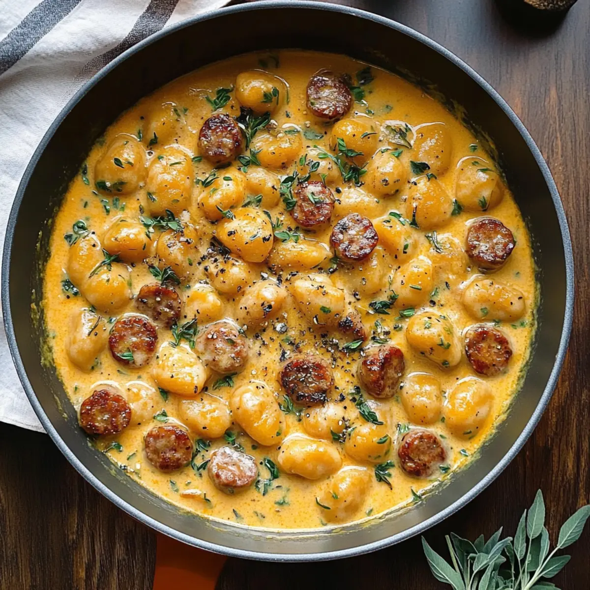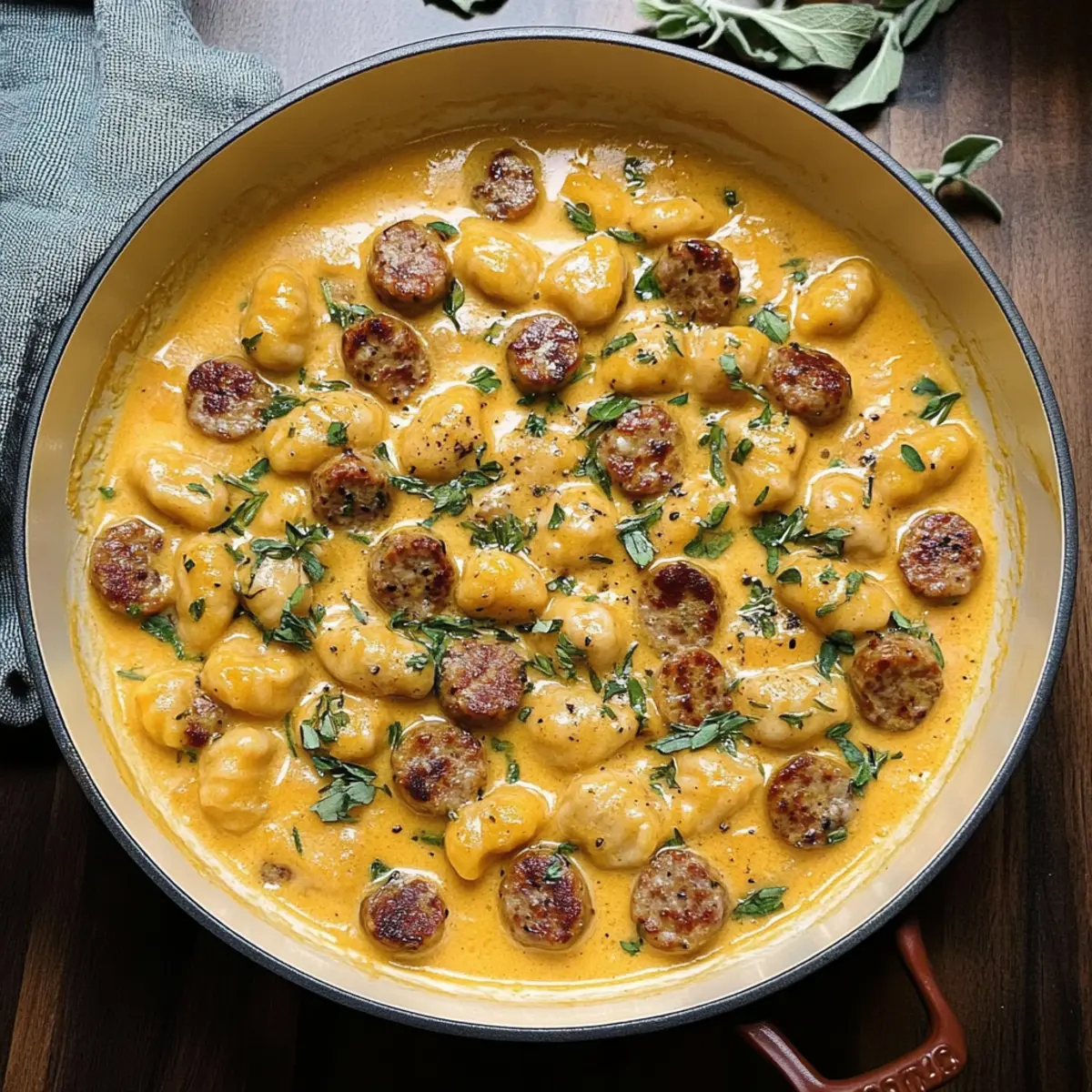 Creamy Butternut Squash Gnocchi with Sausage and Herbs Delight