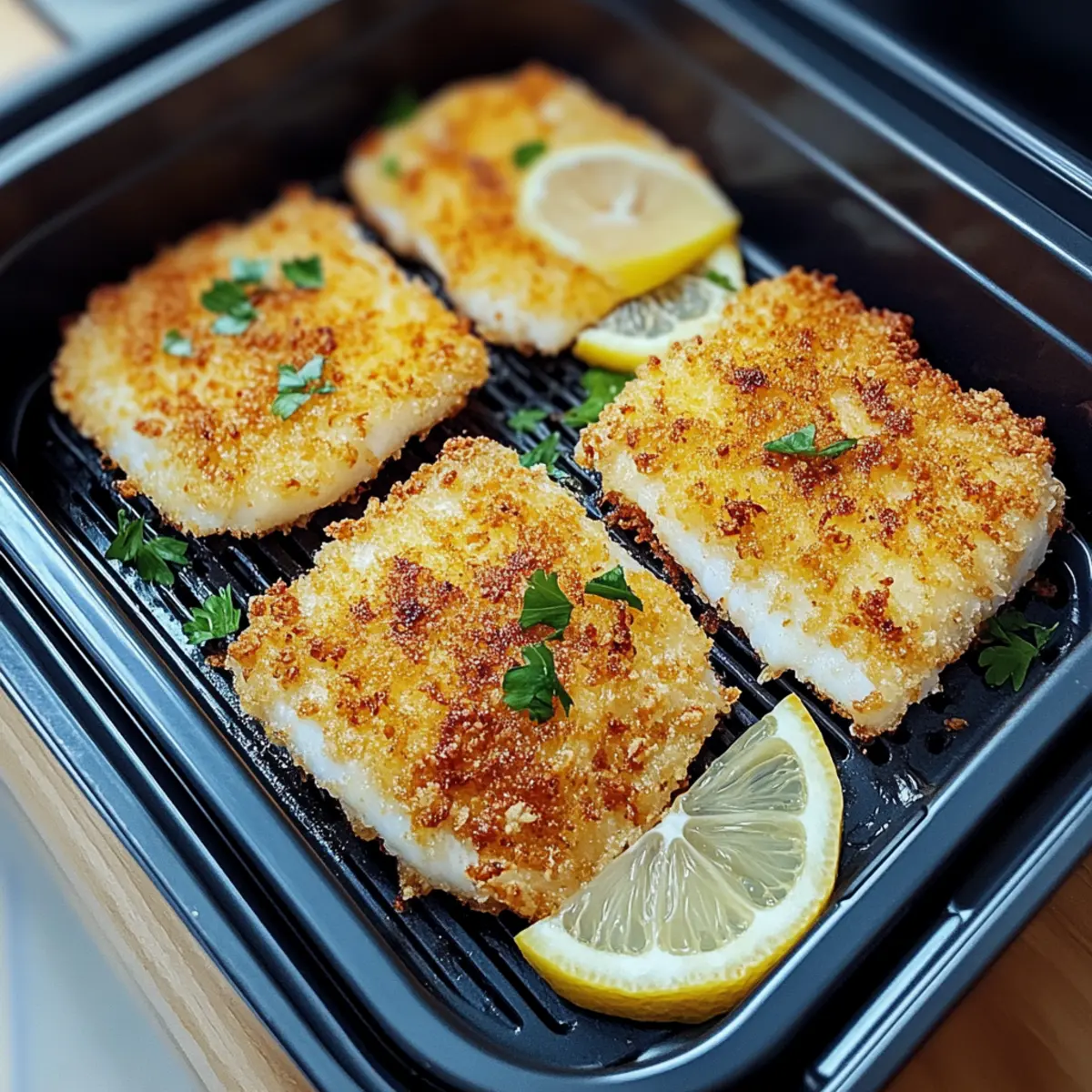 Cook the fillets in the air fryer for about 8 minutes. After this time, carefully flip each fillet using tongs to ensure both sides achieve that golden color. Continue cooking for an additional 3 minutes until the fish is golden brown and the coating is perfectly crisp.