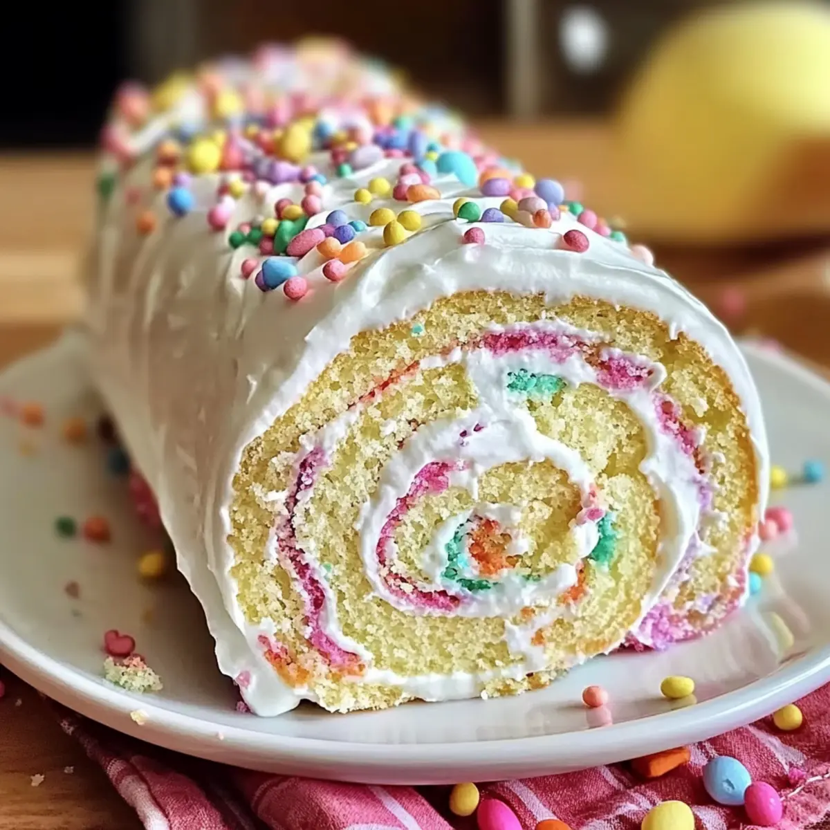 Before serving, drizzle melted white chocolate over the top of your Easter Cake Roll for a lovely finish. Add a sprinkling of vibrant sprinkles over the chocolate for that festive aesthetic. Allow it to chill in the refrigerator for a few additional minutes until the chocolate sets perfectly.
