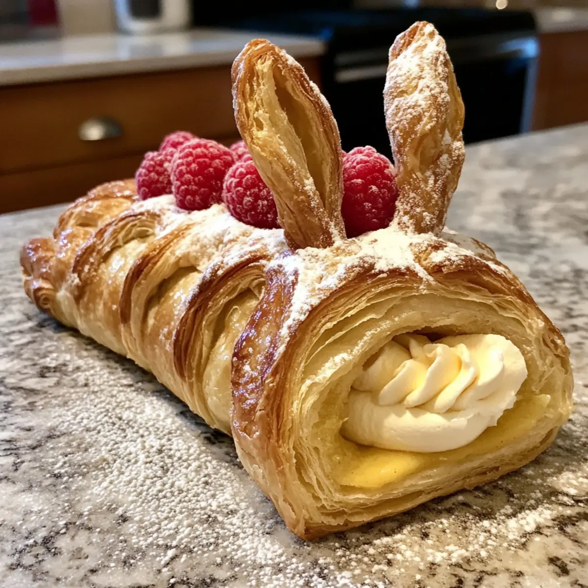 - Cool and Fill Pastries: Once baked, let the bunny pastries cool on a wire rack while you whip 1 cup of dairy-free cream. Slice the pastries in half and pipe in the lemon curd followed by fresh raspberries.