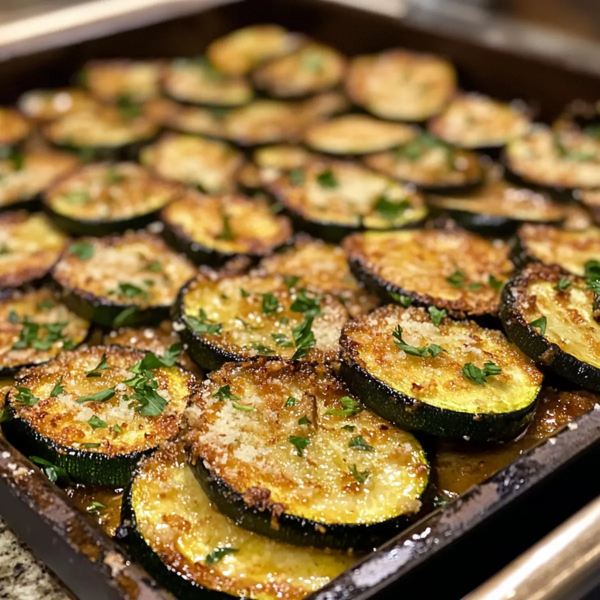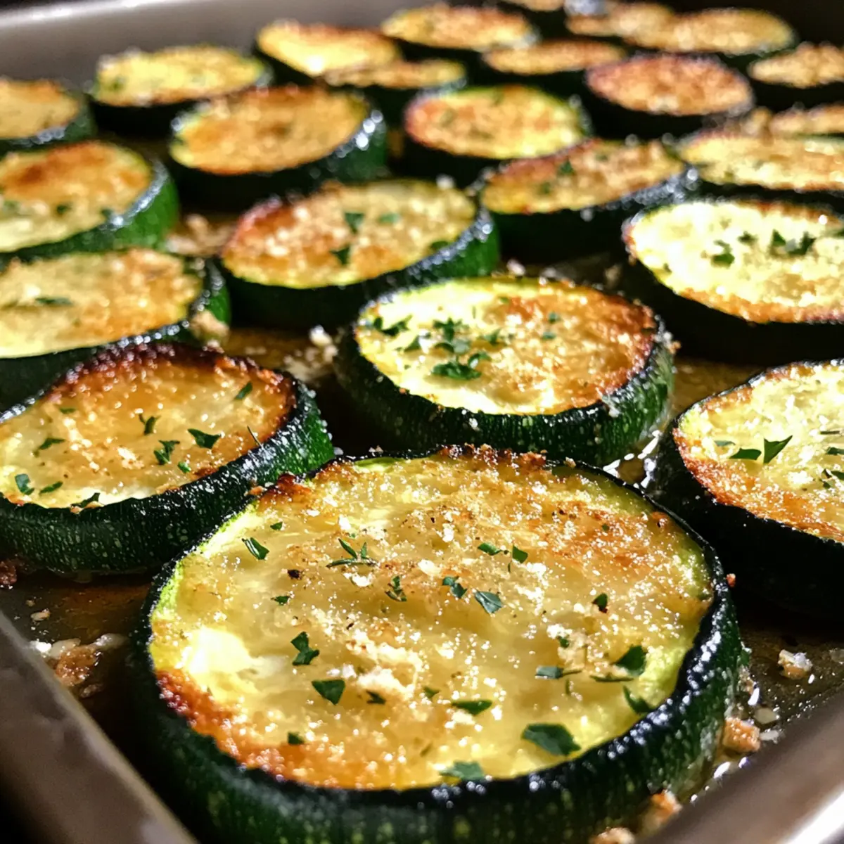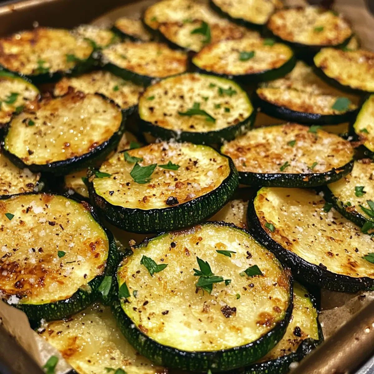 Once baked, remove the zucchini from the oven and check for that crispy, divine look. Sprinkle chopped parsley over the top for a fragrant touch and a burst of color. This simple garnish will elevate your Garlic Parmesan Roasted Zucchini, making it not just tasty but visually appealing, ready to enjoy immediately!