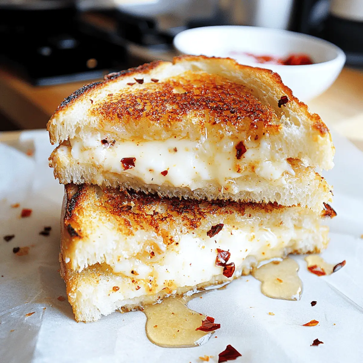 These Goat Cheese Grilled Cheese with Honey & Red Pepper Flakes are perfect for meal prep enthusiasts! You can assemble the sandwiches up to 24 hours in advance by spreading the melted butter infused with red pepper flakes on the bread and layering the goat cheese and white cheddar, drizzling honey in between. Wrap each sandwich tightly in plastic wrap and refrigerate to prevent drying out. When you’re ready to enjoy, simply heat a skillet over medium heat and grill the sandwiches for 5-7 minutes on each side until golden brown and the cheese is melted. This method ensures that you can savor this creamy, tangy delight with minimal effort on a busy weeknight!