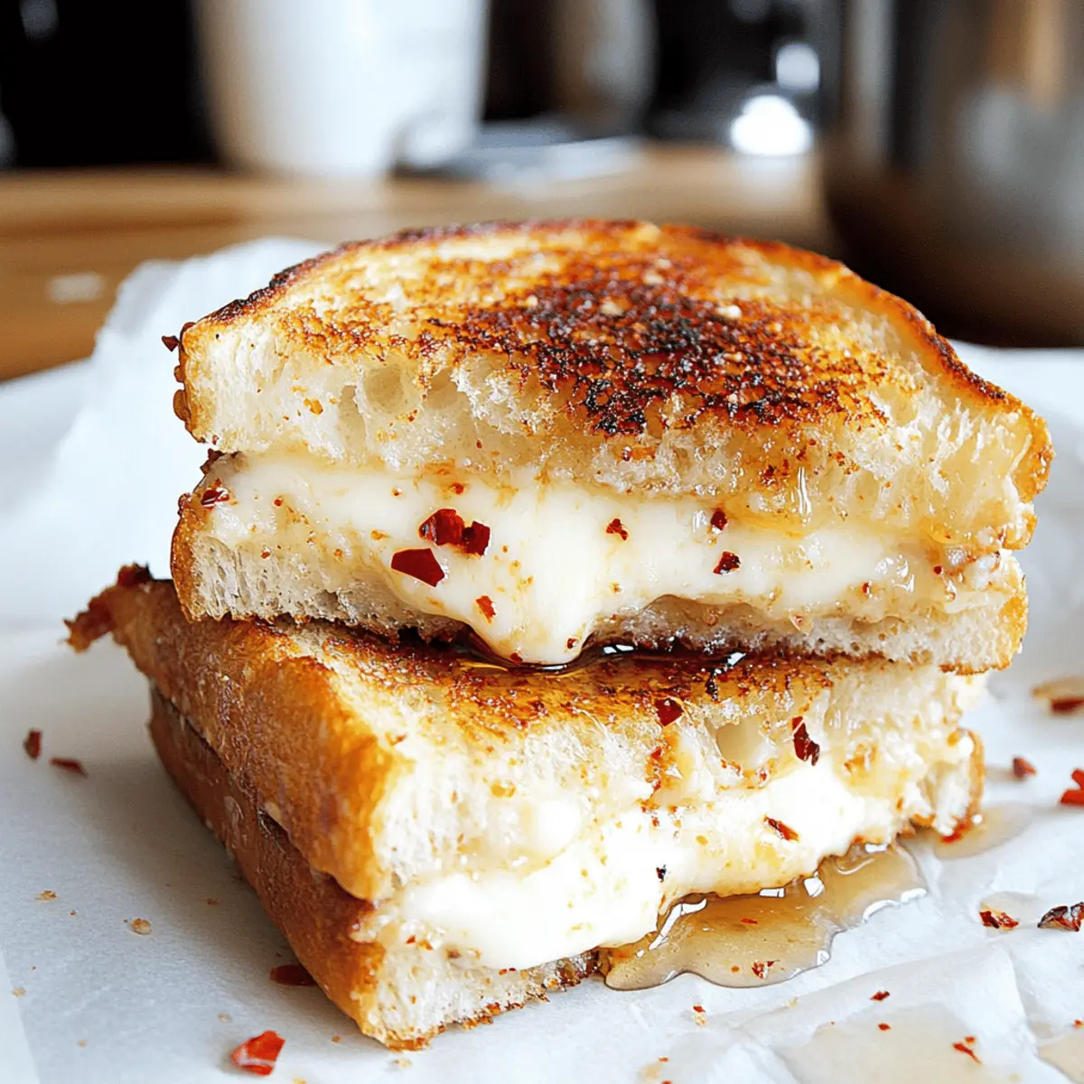 Once cooked, remove the sandwich from the pan and drizzle the remaining honey over the top, adding a touch of sweetness. If desired, sprinkle extra red pepper flakes for more heat. This final addition elevates your Goat Cheese Grilled Cheese with Honey & Spice to tantalizing heights before serving it up!