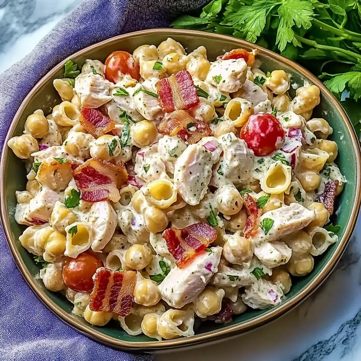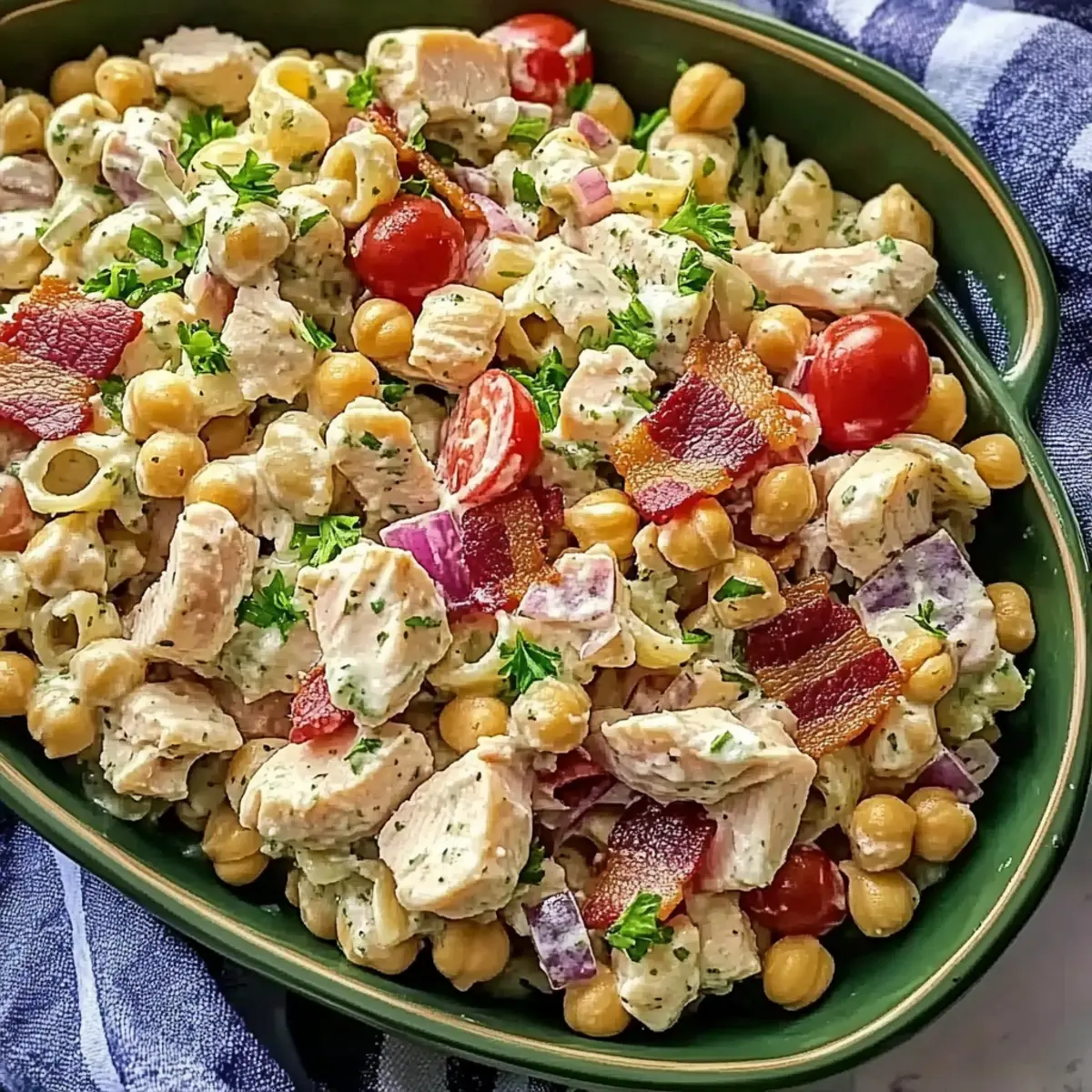 When choosing chickpea pasta for your High Protein Bacon Ranch Pasta Salad, I recommend looking for brands like Banza. It has a fantastic texture and taste that holds up well in salads. You want a pasta that is firm and not too mushy; check the ingredients to ensure it’s made primarily from chickpeas and free from unwanted fillers.