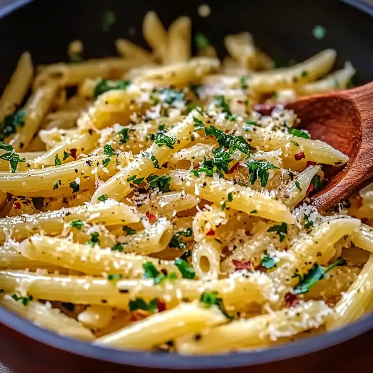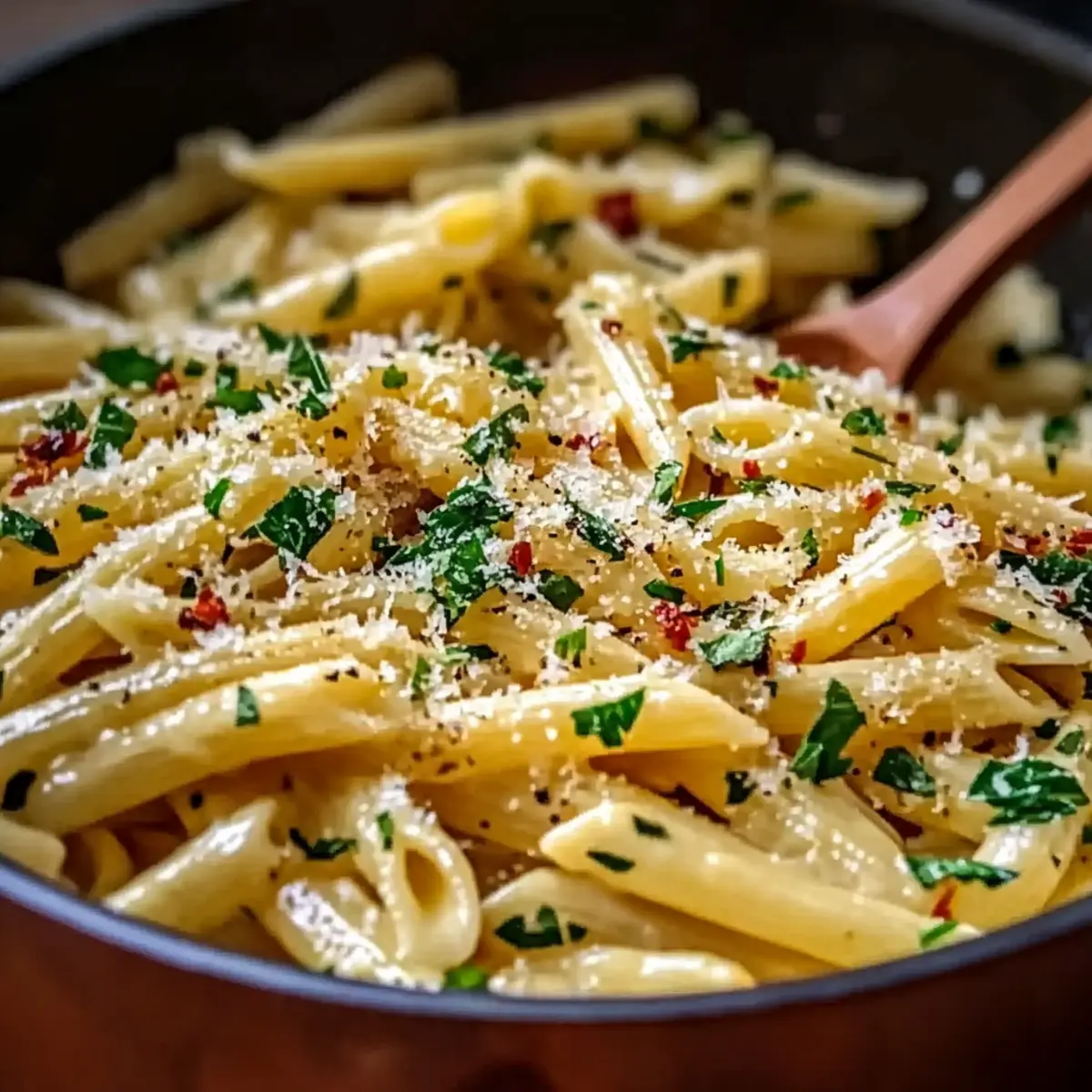 Stir in a pinch of red pepper flakes for a touch of spice, emulsifying them into the garlic olive oil sauce. Allow them to toast for about 30 seconds, which will enhance their flavors. This step is essential for that comforting yet lively profile of your Italian Pasta with Garlic Olive Oil Sauce, bringing just the right kick to the dish.