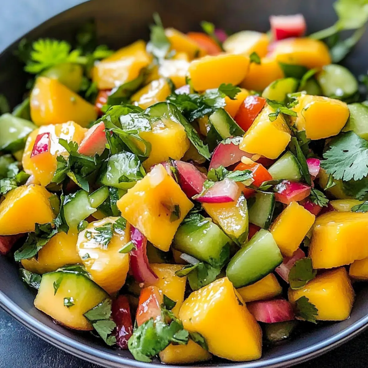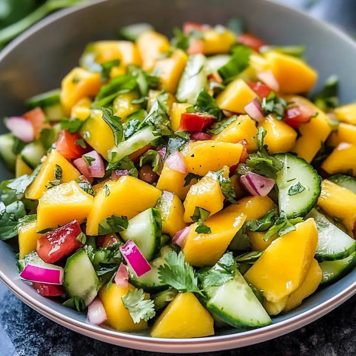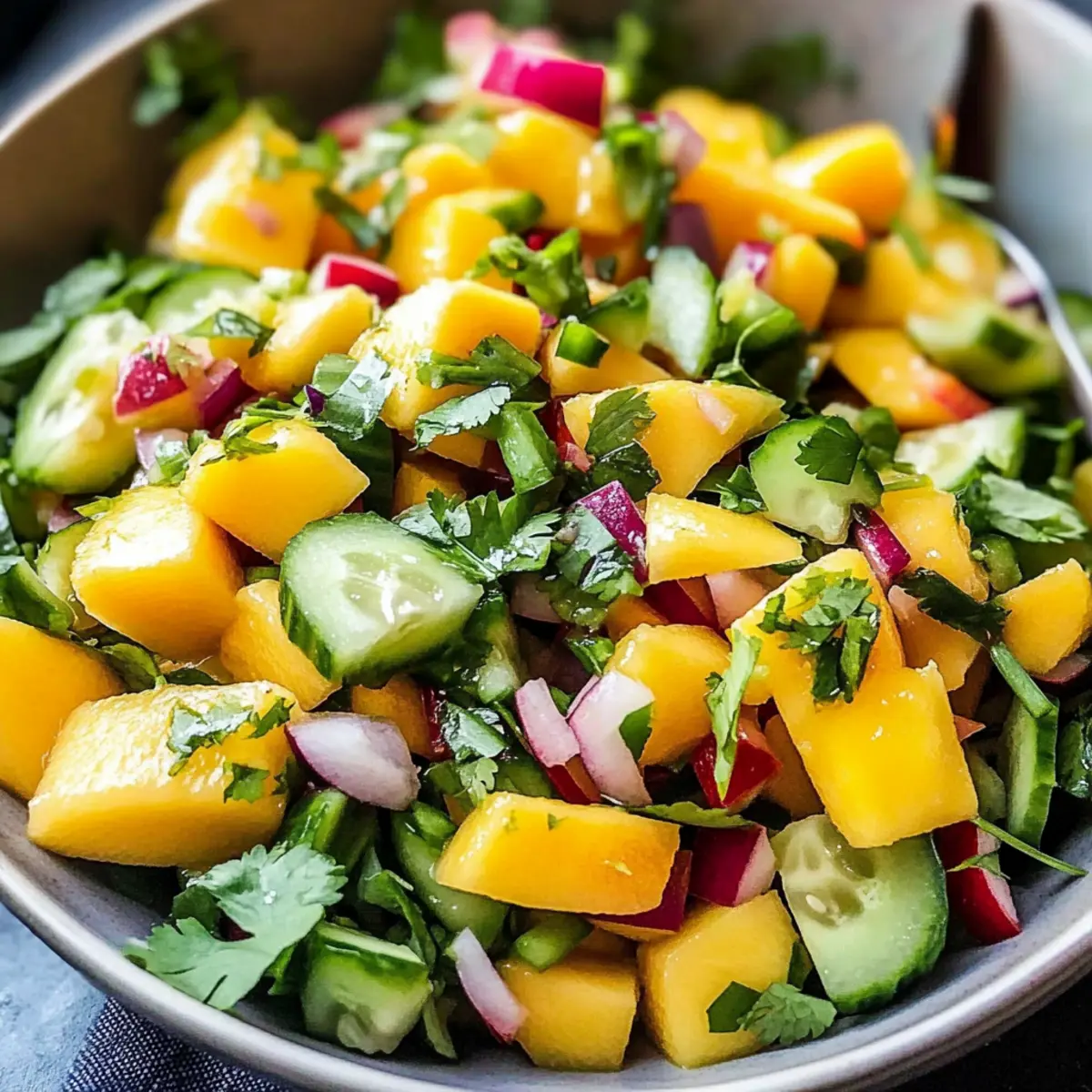 Vibrant, this Mango Salad dazzles not only in appearance but in taste, combining sweet mangoes and crunchy cucumbers. Refreshing and perfect for those hot days, it’s a light meal that’s both satisfying and guilt-free. Quick to prepare, you can whip it up in minutes, making it ideal for busy chefs or anyone bored with fast food. Versatile, it can easily be modified with herbs or other fruits to fit your taste. If you’re looking for more light and revitalizing dishes, don’t miss out on our delicious Balsamic Lentil Salad or the colorful Southwest Chicken Salad.