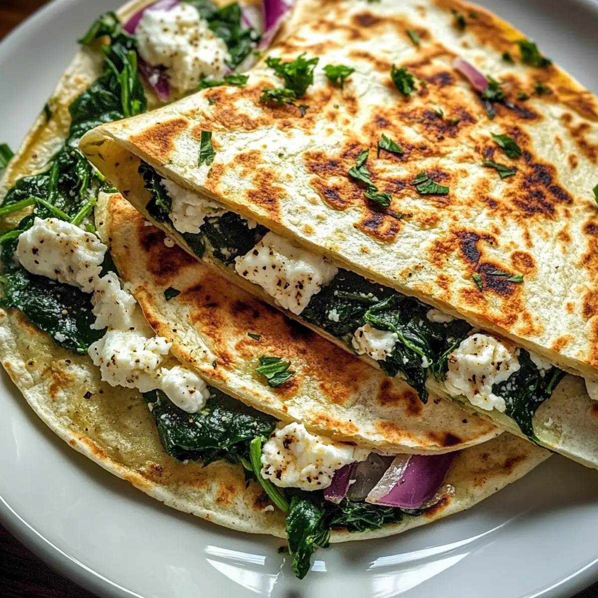 Use Fresh Ingredients: Opt for fresh spinach and quality cheeses; they make all the difference in flavor for Mediterranean quesadillas with spinach, feta, mozzarella, and red onion.