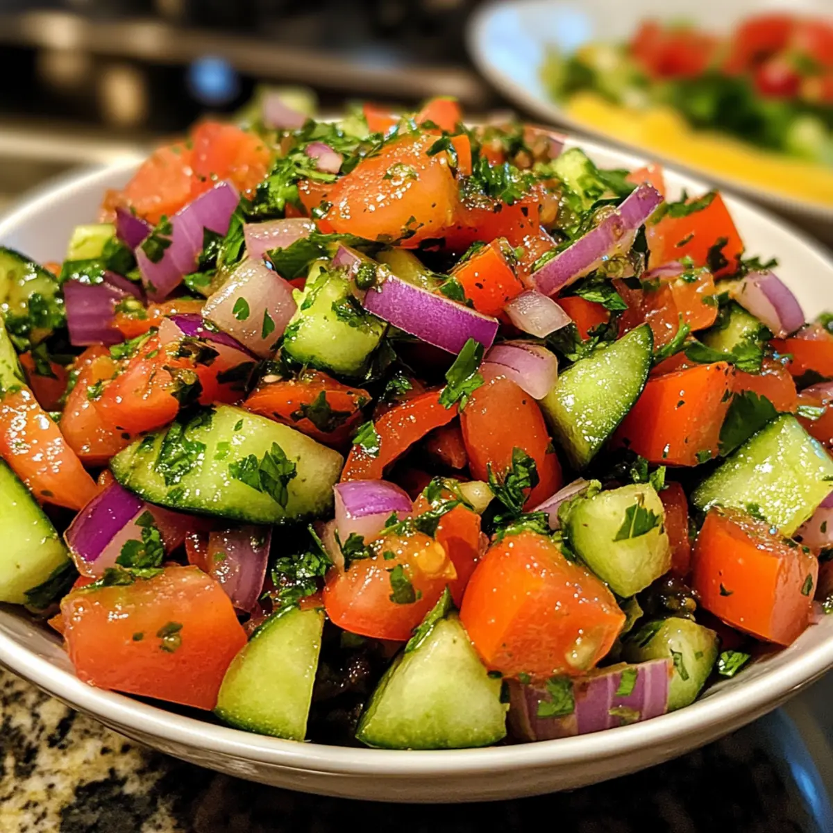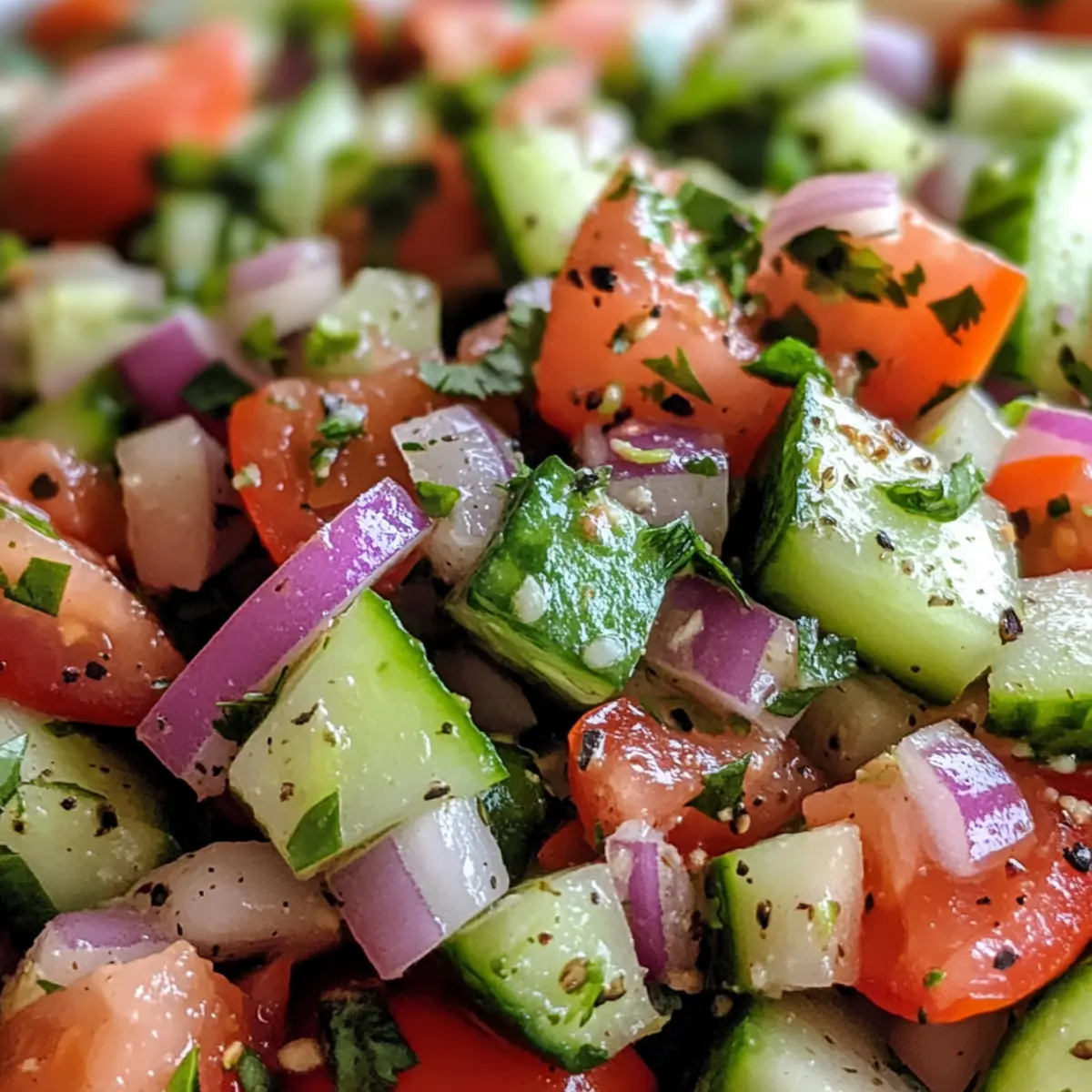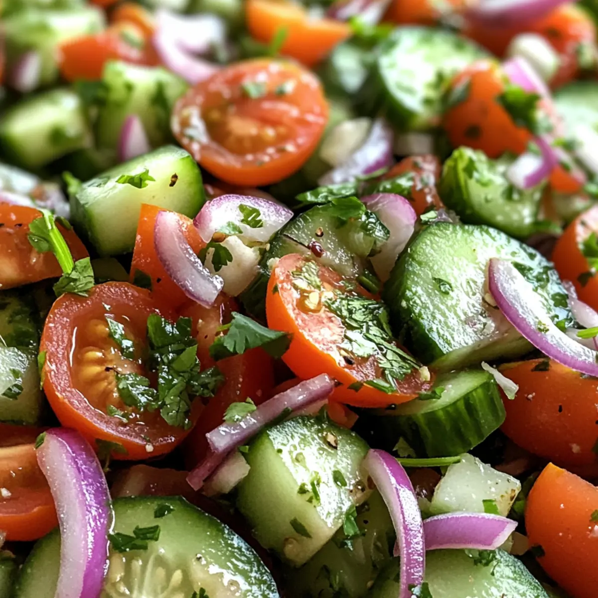 Vibrant Ingredients: With crunchy cucumbers, juicy tomatoes, and zesty red onions, every bite is a refreshing delight that showcases the beauty of fresh produce.