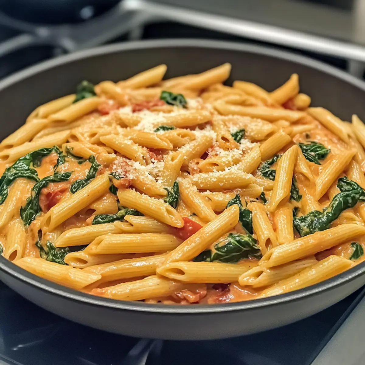 These One-Pot Spinach Tomato Pasta dishes are perfect for meal prep enthusiasts! You can chop the onions, mince the garlic, and even combine the tomato paste and chicken stock (or vegetable broth) up to 24 hours ahead, storing them in an airtight container in the refrigerator. For the best flavor, prepare the sun-dried tomatoes and fresh spinach just before cooking. When you’re ready to serve, simply heat the prepped ingredients in a pot, add the penne pasta, and follow the usual cooking steps. This way, you’re guaranteed a delicious and comforting meal on busy nights, with minimal fuss and maximum flavor!