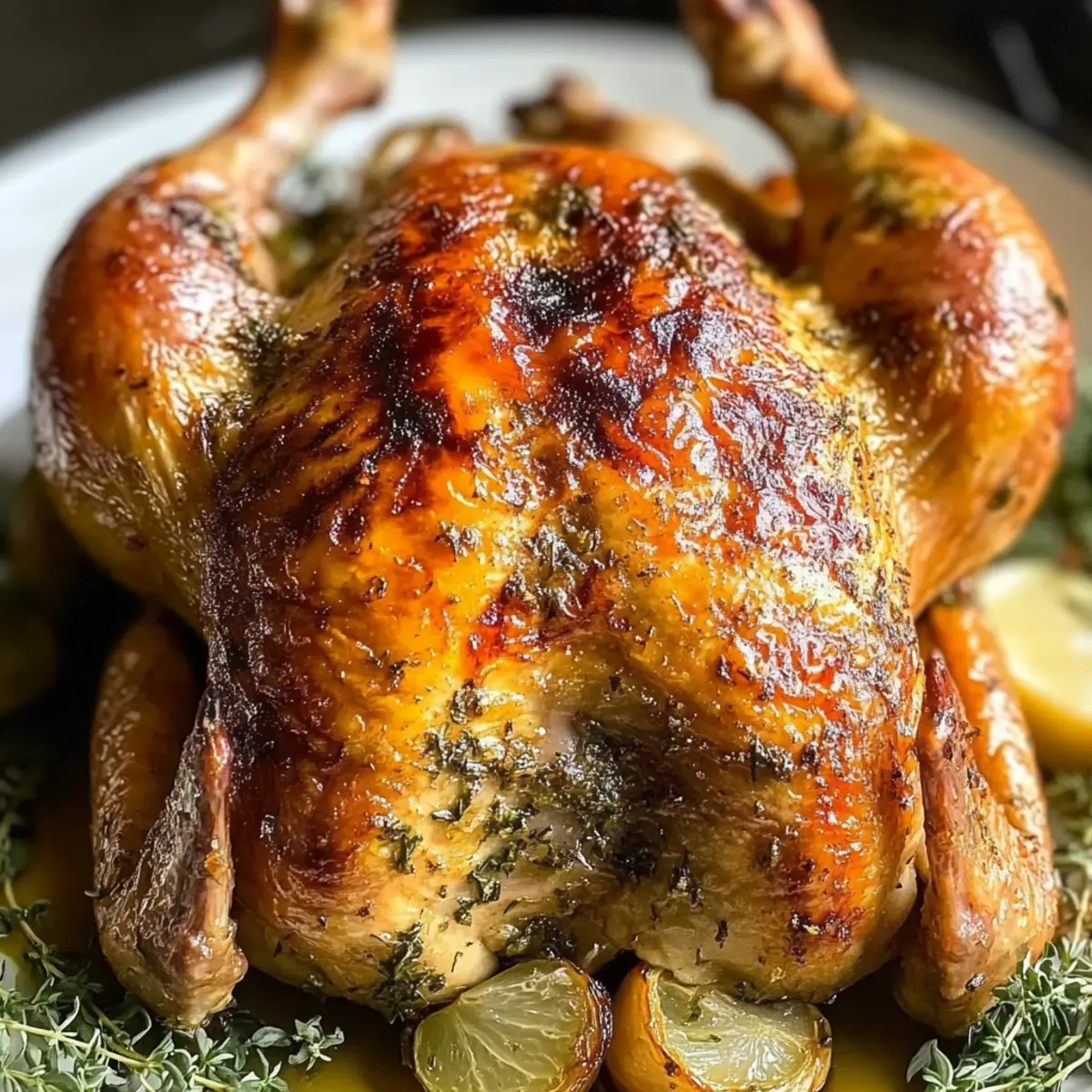 To achieve that beautiful crispy skin, pat the chicken dry thoroughly before seasoning. Moisture on the skin will lead to steaming rather than roasting, which can result in a soggy texture. Additionally, minimize basting during the last 20 minutes to lock in that crunch!