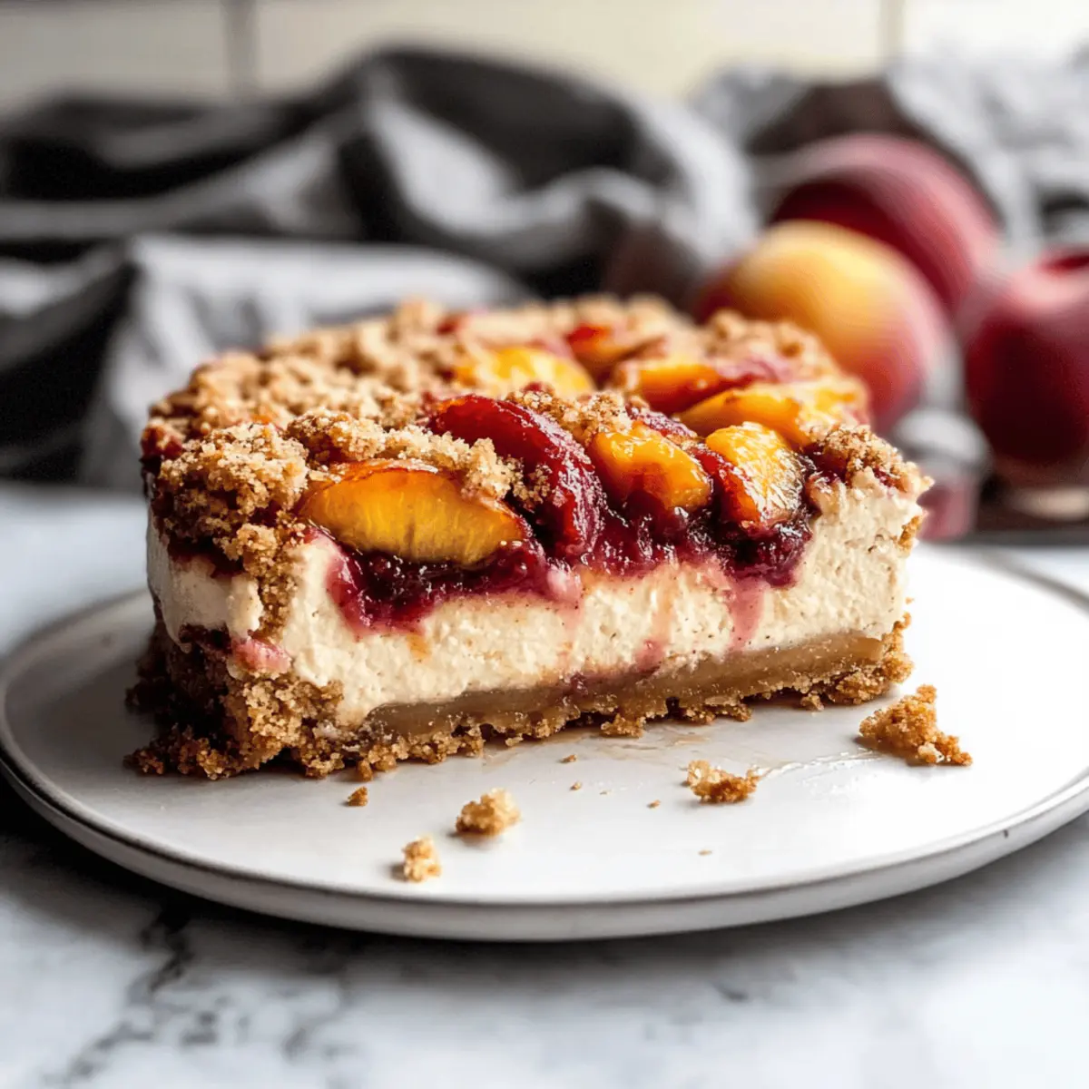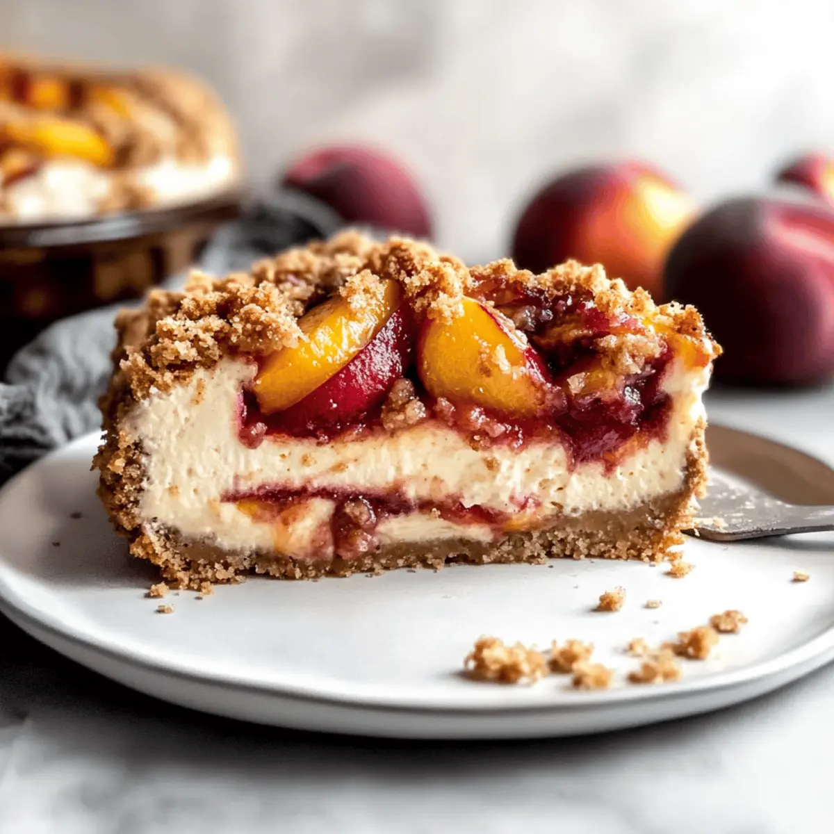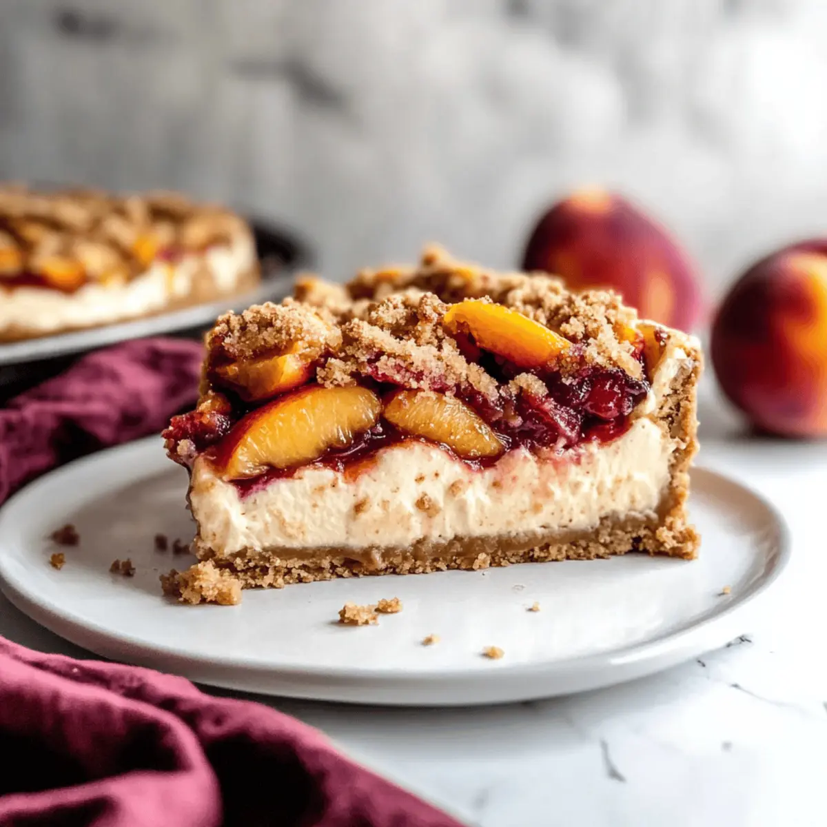 Rich, Decadent Layers: Each bite delivers creamy cheesecake complemented by sweet, roasted peaches, creating a harmonious blend that showcases summer’s best flavors.