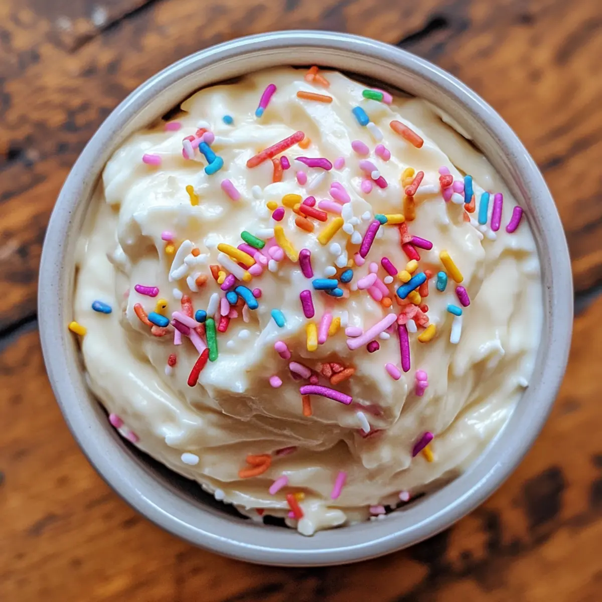 Transfer your completed dip into a serving dish and refrigerate for at least 30 minutes. This chilling helps the flavors meld beautifully. Once chilled, garnish the top with the reserved sprinkles for a festive touch. Serve it alongside graham crackers, pretzels, or fresh strawberries for a delightful snack at your celebration!