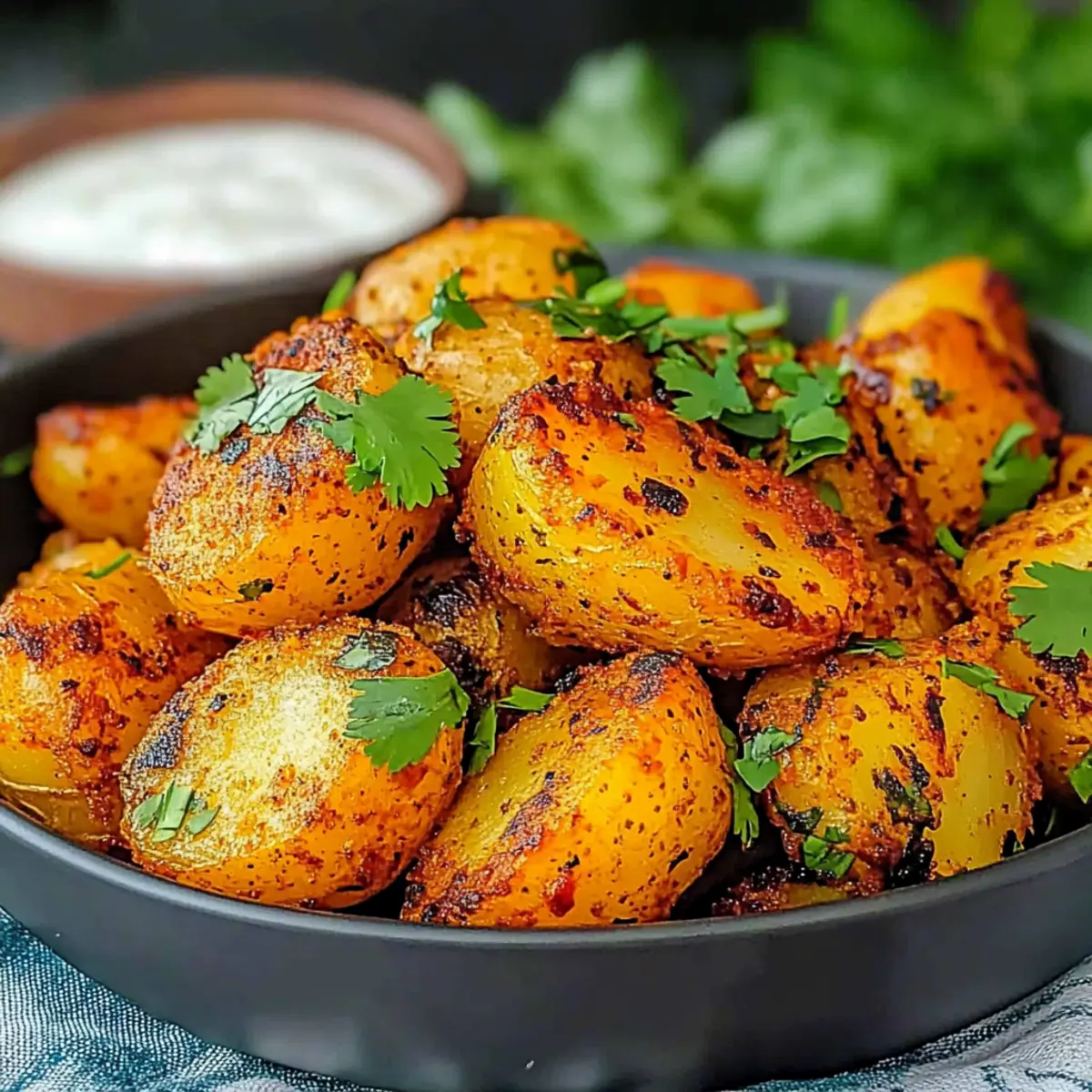 Once they are perfectly crispy and golden, remove the potatoes from the heat. Garnish with freshly chopped cilantro or curry leaves for a burst of freshness. These delightful Effortless Spicy Indian Potatoes can be served warm alongside rice, bread, or incorporated into wraps for a fantastic meal or snack.