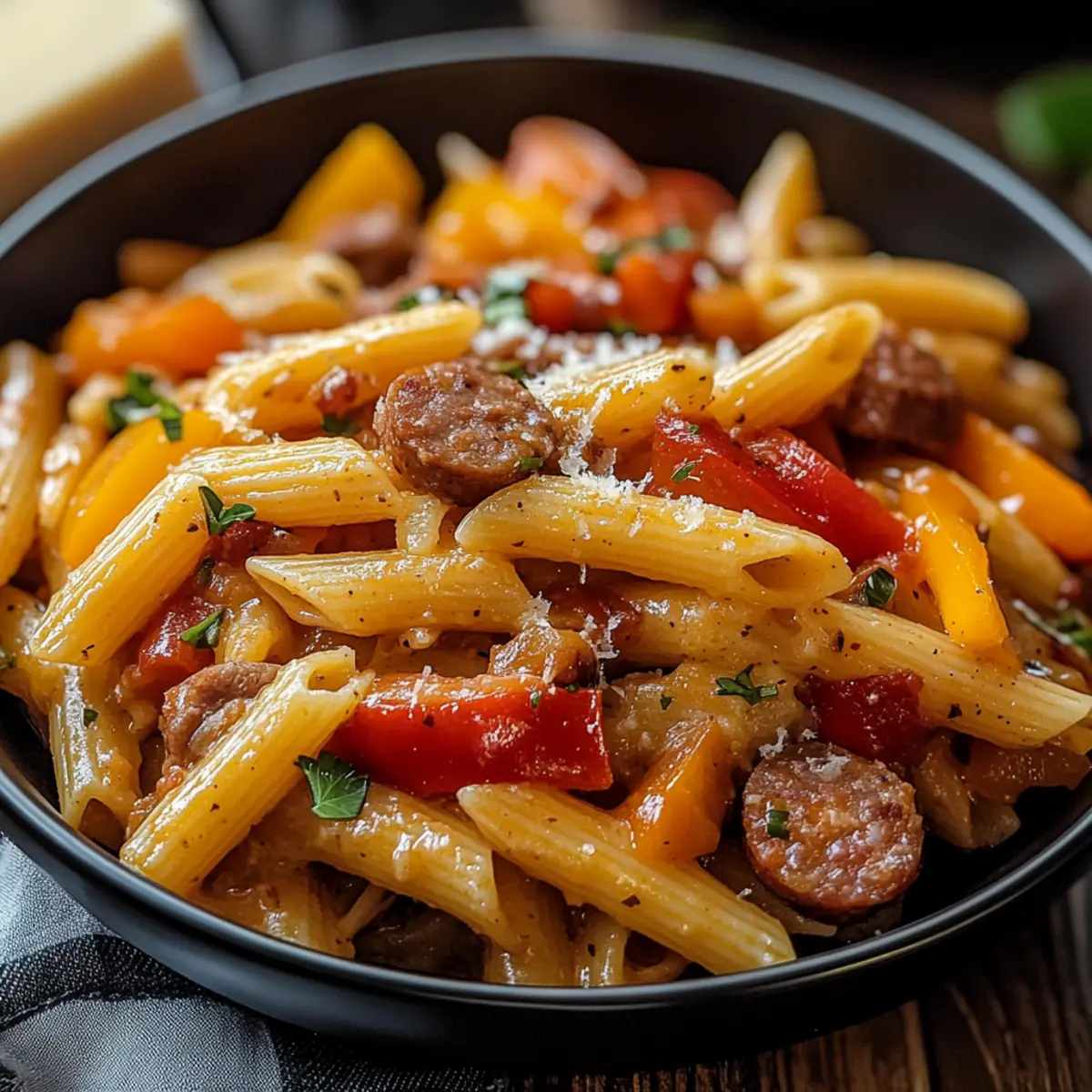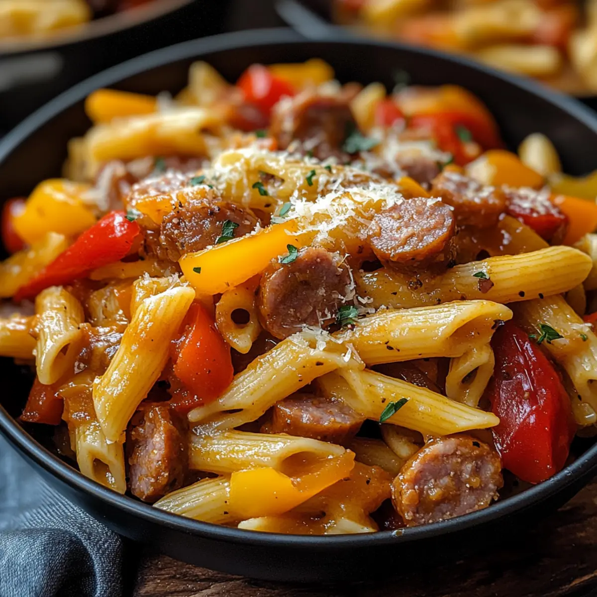 Flavor Explosion: The combination of smoky sausage, sweet bell peppers, and creamy sauce creates a dish that’s bursting with flavor.