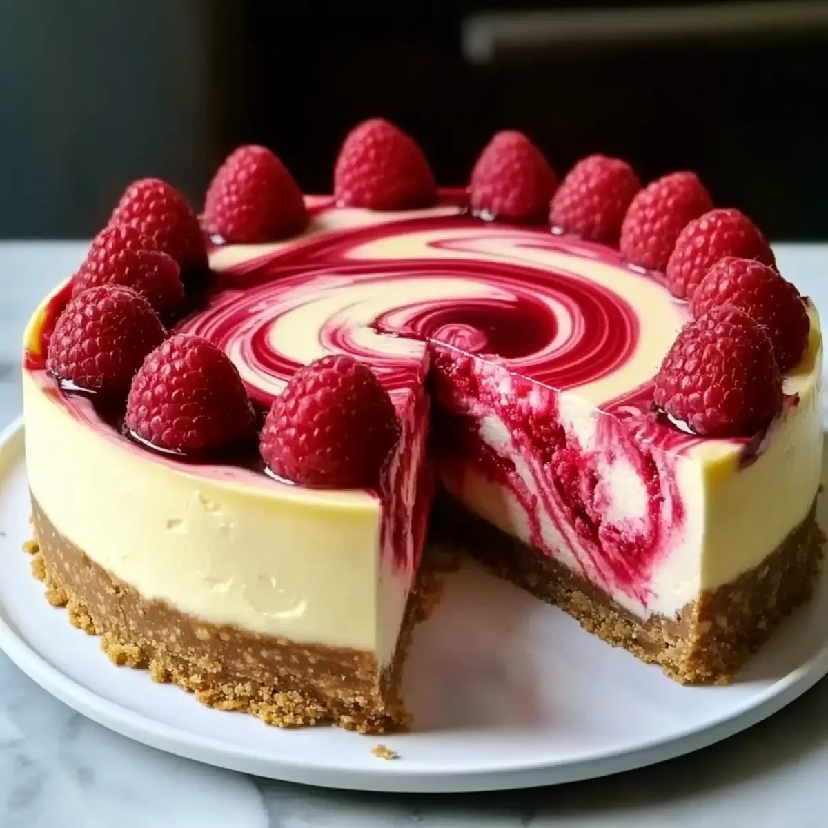 Irresistible White Chocolate Raspberry Swirl Cheesecake Delight